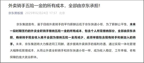 2月24日,京東集團(tuán)就五險(xiǎn)一金個(gè)人所需繳納部分發(fā)布聲明