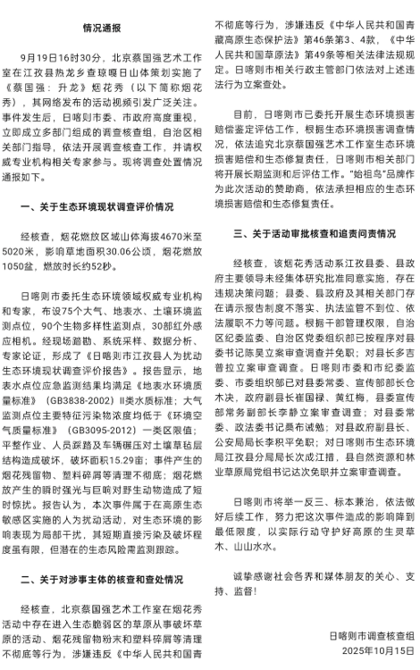 官方通報(bào)“蔡國(guó)強(qiáng)煙花秀”事件調(diào)查核查情況(G)