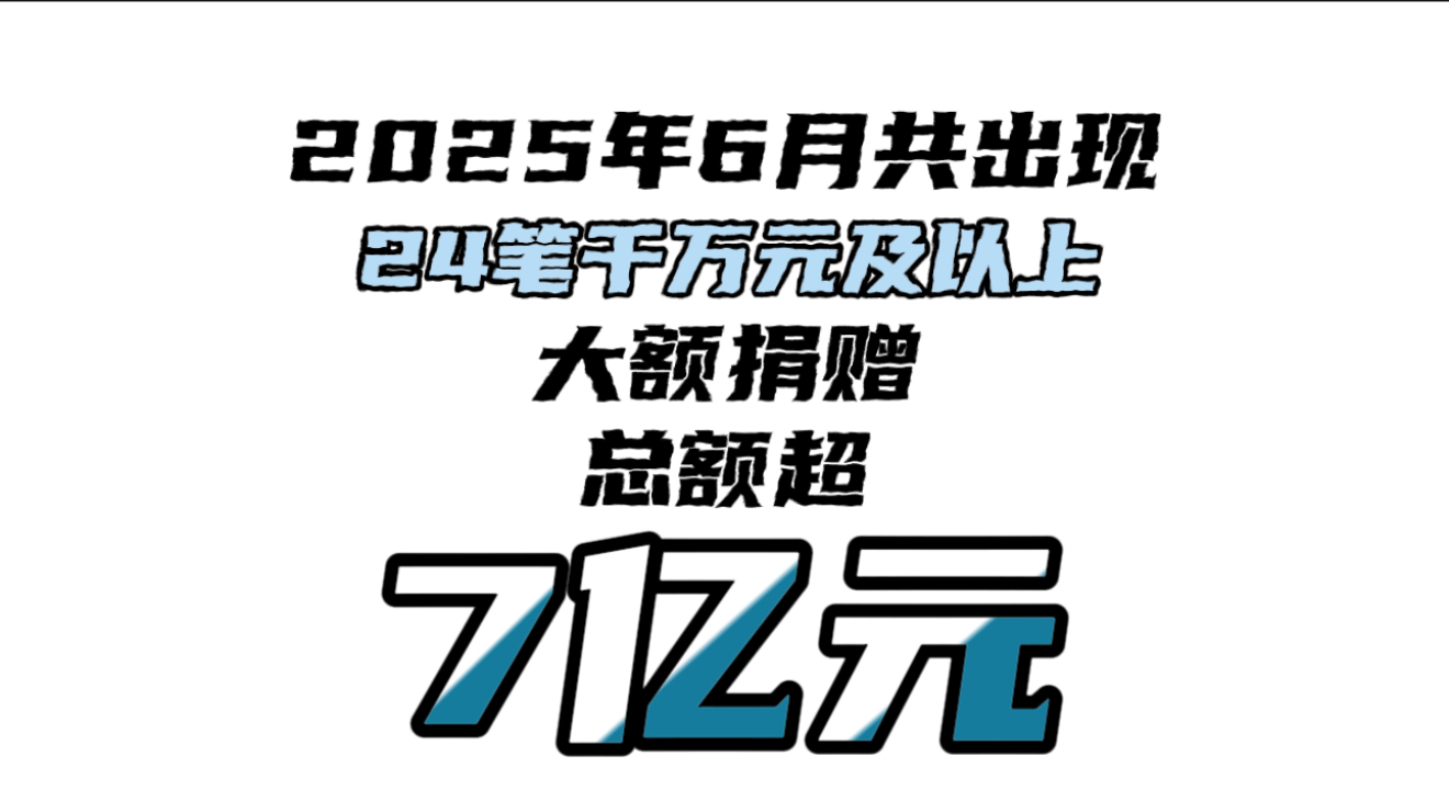 2025年6月大額捐贈一覽:捐贈總額連續(xù)兩月下跌,近九成流向教育領域
