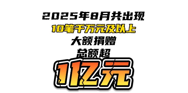 2025年8月大額捐贈一覽:千萬元及以上捐贈下滑明顯,近半流向救災領域
