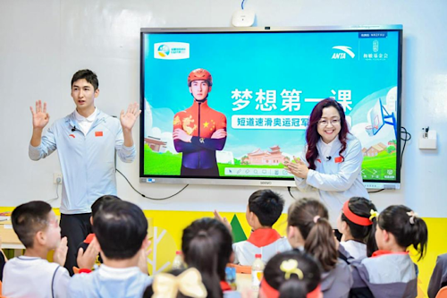 奧運冠軍、安踏公益超A伙伴武大靖與同學(xué)們分享逐夢故事