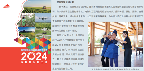 ▲數(shù)字木蘭普惠班:根據(jù)《民宿管家國家職業(yè)標(biāo)準(zhǔn)(2024 年版)》要求,結(jié)合消費(fèi)群體對(duì)民宿服務(wù)的需求,開展政策素養(yǎng)、基礎(chǔ)服務(wù)、特色服務(wù)和數(shù)字素養(yǎng)四項(xiàng)能力的實(shí)操性培訓(xùn)。