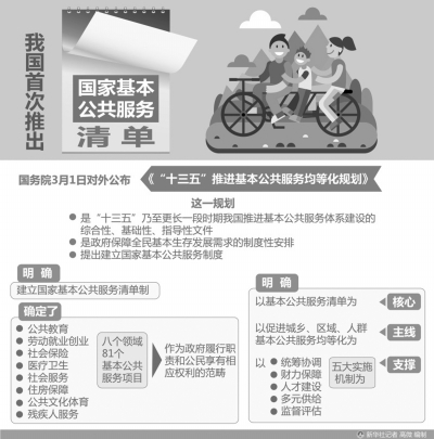3月1日,國務(wù)院印發(fā)的《“十三五”推進(jìn)基本公共服務(wù)均等化規(guī)劃》正式對外公布?!兑?guī)劃》提出,到2020年,基本公共服務(wù)體系更加完善,體制機(jī)制更加健全,在學(xué)有所教、勞有所得、病有所醫(yī)、老有所養(yǎng)、住有所居等方面持續(xù)取得新進(jìn)展,基本公共服務(wù)均等化總體實(shí)現(xiàn)。