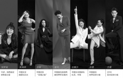 發(fā)布會現(xiàn)場,剛從世界杯回來的中國女足隊員們身著禮服,在T型臺上款款走來,英姿颯爽,光彩奪目。