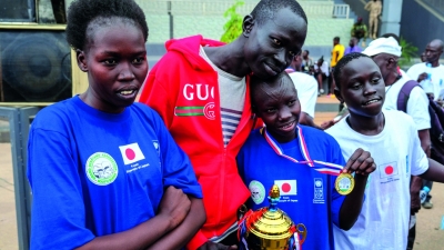 2019年3月在南蘇丹贏得和平馬拉松比賽的年輕人