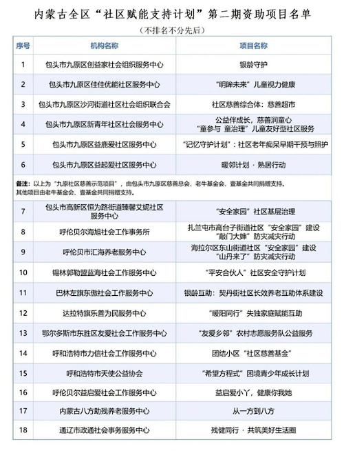 第二期內(nèi)蒙古全區(qū)“社區(qū)賦能支持計(jì)劃”資助項(xiàng)目名單公布 九原社區(qū)慈善示范項(xiàng)目簽約啟動(dòng)