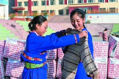 2019年10月16日,囊謙下起了冰雹,寒意初現(xiàn),‘中國宋慶齡基金會·優(yōu)衣庫專項基金’衣物捐贈儀式在青海省囊謙縣第一民族中學舉行。優(yōu)衣庫捐贈了價值約600萬元的7萬余件愛心衣物,為青海地區(qū)的脫貧攻堅盡己所能,希望通過一件件衣服承載的愛心,為打通貧困攻堅最后一公里注入力量。”