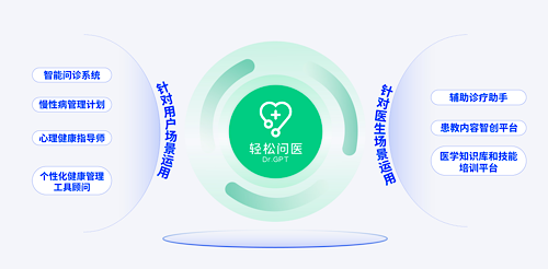 去年,輕松集團(tuán)旗下輕松健康發(fā)布了自研醫(yī)療健康大模型“輕松問(wèn)醫(yī)Dr.GPT”,同時(shí)上線了多項(xiàng)創(chuàng)新應(yīng)用,包括“智能問(wèn)診系統(tǒng)”“個(gè)性化健康管理顧問(wèn)”“慢性病管理計(jì)劃”“心理健康指導(dǎo)師”“醫(yī)學(xué)知識(shí)庫(kù)和技能培訓(xùn)平臺(tái)”“輔助診療助手”以及“患教內(nèi)容智創(chuàng)平臺(tái)”,覆蓋了健康管理服務(wù)全場(chǎng)景應(yīng)用,為醫(yī)護(hù)工作者提供了全面的診療及護(hù)理輔助支持,有效緩解其工作壓力。