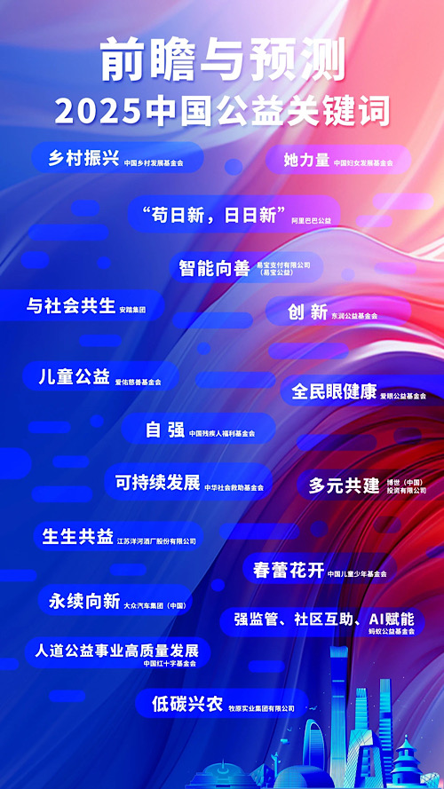 2025年是“十四五”規(guī)劃收官之年,標(biāo)志著中國公益事業(yè)邁入新里程。在第九屆中國公益年會上,《公益時報》聯(lián)合公益?zhèn)鞑ダ硎聲蓡T單位,以行業(yè)前瞻視角提煉年度議題,并發(fā)布17個“2025中國公益關(guān)鍵詞”。