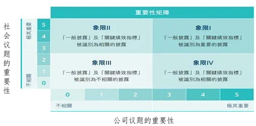 據(jù)介紹,“重要性分析”這一概念由國際咨詢和標(biāo)準(zhǔn)制定機構(gòu)AccountAbility于2003年最早提出,強調(diào)重要性的事項分析和信息披露,不是僅僅用于企業(yè)和股東,而是用來面向主要利益相關(guān)者。2004年聯(lián)合國全球契約組織推出ESG概念后,英國石油公司(BP)、美國福特公司(Ford)和英國電信公司(BT)等很快把重要性分析矩陣引入了公司的可持續(xù)發(fā)展報告或ESG報告之中。