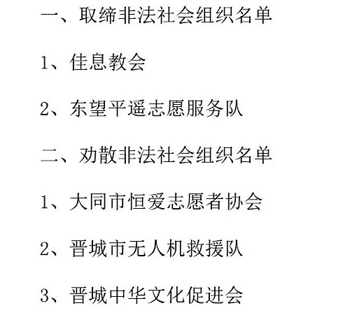 東望平遙志愿服務(wù)隊(duì)、大同市恒愛(ài)志愿者協(xié)會(huì)……又一批非法社會(huì)組織名單公布