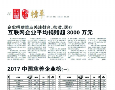 2017年4月26日,第十四屆(2017)中國(guó)慈善榜在京發(fā)布。今年,共有201位慈善家、414家慈善企業(yè)進(jìn)入榜單,總捐贈(zèng)額達(dá)到145.27億元。