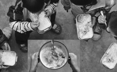 曾經(jīng),廣西某校小學(xué)生每天午餐是“白米飯就水煮黃豆”(上圖2011年3月24日)。“營養(yǎng)改善計(jì)劃”實(shí)施以后,孩子們能吃到營養(yǎng)搭配的飯菜(下圖2017年5月7日,攝影 黃孝邦/新華社)。