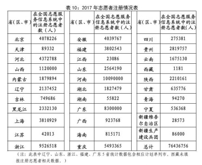 截至2017年底,在全國志愿服務信息系統(tǒng)中注冊的志愿者人數(shù)超過7643萬人。各地培訓志愿者超過261萬人次。