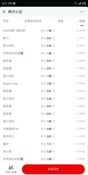 今年活動期間,《公益時報》記者隨機抽取了部分熱門項目的捐贈流水,未大面積發(fā)現(xiàn)有“刷單”現(xiàn)象(注:騰訊公益產(chǎn)品運營團隊認為,一個普通用戶60秒可完成4次捐贈),但也發(fā)現(xiàn)某些熱門項目下有大量0.01元的捐贈,時間間隔數(shù)秒,多數(shù)來自匿名網(wǎng)友,也發(fā)現(xiàn)有少數(shù)同一ID一分鐘內捐贈0.01元達到5次的情況。