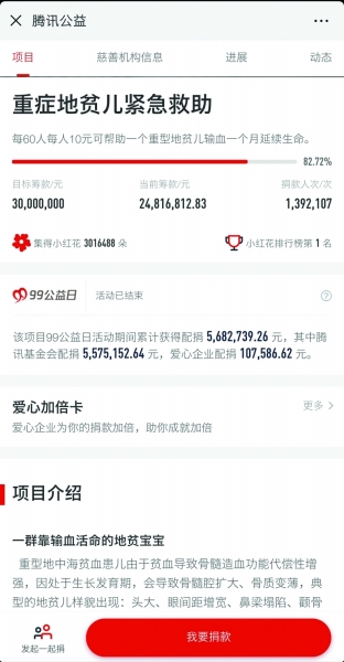 據(jù)德義基金秘書(shū)長(zhǎng)周家沛介紹,在德義基金今年上線的36個(gè)項(xiàng)目中,重點(diǎn)在推的項(xiàng)目有重癥地貧兒緊急救助、保險(xiǎn)項(xiàng)目、眼科白內(nèi)障項(xiàng)目等等,其中,重癥地貧兒緊急救助是36個(gè)項(xiàng)目中籌款成績(jī)最好的項(xiàng)目。該項(xiàng)目是德義跟《深圳晚報(bào)》等機(jī)構(gòu)合作,以此推進(jìn)地中海貧血癥領(lǐng)域的覆蓋。該項(xiàng)目所集的小紅花數(shù)量在騰訊平臺(tái)位居第一位,眾集小紅花使得騰訊配捐倍數(shù)加大。加之是重大疾病類(lèi)項(xiàng)目,容易獲得公眾的同理心,因此籌款成績(jī)喜人。