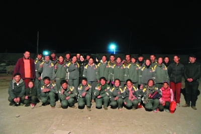 借著太陽能路燈的光亮,全校師生拍下一張統(tǒng)一穿著校服的合影。