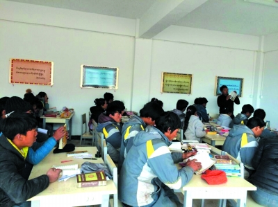在青藏高原,有一個叫囊謙的縣城坐落在青海省最南端的玉樹,與西藏昌都地區(qū)接壤。縣城里有一所特殊的學校——丁桑慈善職業(yè)學校。由于牧區(qū)資源稀少,也不適合建立希望小學,囊謙縣果切寺佛學院院長尕瑪丁桑仁波切個人籌資辦起了這所學校。學校實行寄宿制度,學生的一切生活、住宿、學習用品、衣服等和師資、教材、人員工資等費用,全部由尕瑪丁桑仁波切一人獨自承擔。學校實行五年制教育,一年藏漢文知識學習、四年職業(yè)技術(工藝美術,唐卡,藏毯制作)學習。(本版文字和圖片均來自作者卡洛)