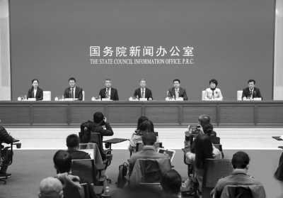 國務(wù)院政策例行吹風(fēng)會(huì)主席臺(tái)(焦非/攝)
