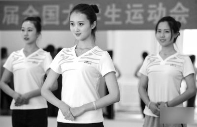 日前,第九屆全國大學(xué)生運動會禮儀志愿者培訓(xùn)在天津航空培訓(xùn)基地舉行。參照航空乘務(wù)員培訓(xùn)標(biāo)準(zhǔn),首批50名大學(xué)生禮儀志愿者在專業(yè)禮儀培訓(xùn)師指導(dǎo)下進行社交禮儀、禮儀儀態(tài)和芭蕾舞基礎(chǔ)等項目的訓(xùn)練。