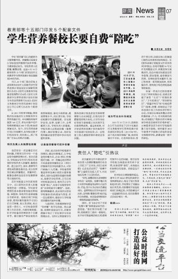 學(xué)生營養(yǎng)餐校長要自費“陪吃”