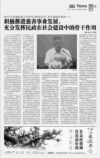 積極推進慈善事業(yè)發(fā)展,充分發(fā)揮民政在社會建設中的骨干作用