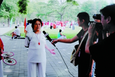 在迎奧運(yùn)的活動(dòng)中,劉淑敏老人參加了英語學(xué)習(xí)班,編排并出演了英語情景劇,在北京電視臺(tái)錄像播出,有電視臺(tái)專門來采訪她