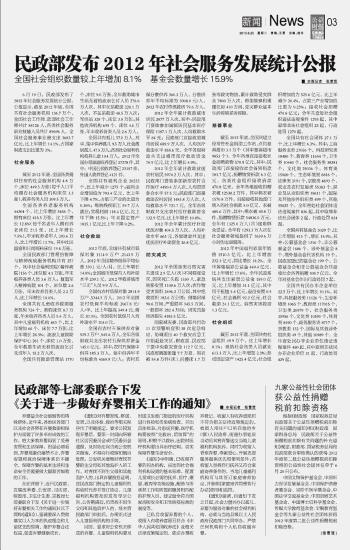 民政部發(fā)布2012年社會服務發(fā)展統(tǒng)計公報