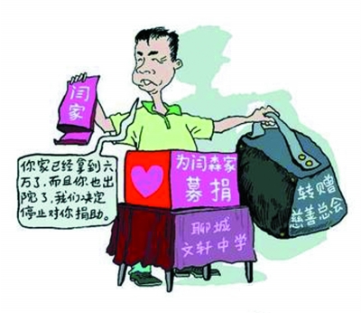 問:學(xué)校組織這次捐款是在什么情況下進(jìn)行的?捐款之后,學(xué)校又做了哪方面的工作? 文軒中學(xué)辦公室主任謝德芳:閆森是我們學(xué)校的學(xué)生,他去世后捐出了腎、肝、眼角膜,是一種大愛,他的姐姐也患上尿毒癥,這時(shí)候2010級(jí)二部和學(xué)校政教處、團(tuán)委就發(fā)出了捐款倡議。為了用好善款,對(duì)捐款人負(fù)責(zé),我們后來組織召開了家長(zhǎng)委員會(huì)商定善款如何使用。我們覺得,善款是學(xué)生捐獻(xiàn)的,學(xué)生沒能力掙錢,學(xué)生的背后是家長(zhǎng),因此召開家長(zhǎng)委員會(huì)。 問:家長(zhǎng)委員會(huì)商定后拿出的是什么意見? 謝德芳:3月26日召開的家長(zhǎng)委員會(huì),經(jīng)過商定,所捐的款項(xiàng)用于閆森的姐姐閆淑青看病用。每一步我們都咨詢了律師,我們做的事情,合理合情合法。如果說給閆森捐,他已經(jīng)去世,沒必要了,所以倡議書上是說給閆森的姐姐捐款,這是家長(zhǎng)委員會(huì)上一致通過的。隨后就和閆森的家長(zhǎng)簽訂了《捐款協(xié)議書》。 問:閆森的父母對(duì)這筆捐款持什么態(tài)度? 謝德芳:他們多次到學(xué)校要錢,哭過、鬧過,想把剩下的善款全部要走,并說家庭困難欠債40多萬,并說捐錢是為閆森家捐的就要給他,后來又提出要一部分作為閆淑青的營(yíng)養(yǎng)費(fèi)。當(dāng)時(shí)考慮到他的實(shí)際情況,讓其提供閆森、閆淑青前期未報(bào)銷的單據(jù),和看病期間的來回車費(fèi)、住宿費(fèi)單據(jù),將這些拿來后報(bào)銷。閆淑青的家長(zhǎng)說沒有,沒有憑據(jù)我們沒法給他錢。后來又告訴他閆淑青以后上大學(xué)的學(xué)費(fèi)、生活費(fèi)都可以從善款中解決,但閆森的父母執(zhí)意要錢。 問:學(xué)校對(duì)這筆捐款又持什么態(tài)度呢? 謝德芳:我們堅(jiān)持按簽署的《捐款協(xié)議書》執(zhí)行,我們捐的錢用于救命、救急,但不救窮,我們當(dāng)時(shí)給他的家長(zhǎng)解釋得很清楚。 問:這筆捐款怎么用,是誰(shuí)說了算? 謝德芳:我們學(xué)校僅是善款的執(zhí)行者,全體師生及全體家長(zhǎng)才有權(quán)決定善款的用途。學(xué)校的工作重點(diǎn)在教學(xué),我們沒有過多精力牽扯到這個(gè)事件當(dāng)中,為了讓善款有一個(gè)妥善的處理方式,我們提請(qǐng)家長(zhǎng)委員會(huì)表決如何處理。 家長(zhǎng)委員會(huì)上我們提供了幾種解決方案,全體家長(zhǎng)一致同意采用如下方案: 鑒于閆淑青已出院,我們的捐款目的已達(dá)到,根據(jù)《捐款協(xié)議書》第六條:“如捐款目的達(dá)到后,捐款還有剩余,則甲方全部轉(zhuǎn)移給紅十字會(huì),以服務(wù)于社會(huì)?!蔽覀兣c紅十字會(huì)聯(lián)系,紅十字會(huì)說其人手少,工作忙不受理我們的轉(zhuǎn)捐。我們又聯(lián)系了慈善總會(huì),慈善總會(huì)非常支持我們的工作,愿意接納我們的轉(zhuǎn)捐,并答應(yīng)可以視情況繼續(xù)關(guān)注此事。鑒于此,我們?nèi)w師生代表及家長(zhǎng)委員會(huì)代表決定把剩余款項(xiàng)251,619.04元,全部捐獻(xiàn)給聊城慈善總會(huì)。 (摘自媒體公開報(bào)道) |