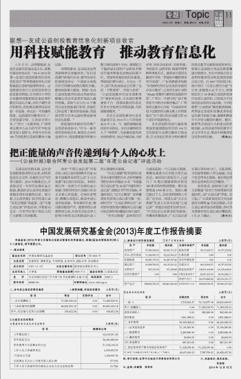 中國發(fā)展研究基金會(2013)年度工作報(bào)告摘要