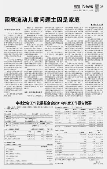 中社社會(huì)工作發(fā)展基金會(huì)(2014)年度工作報(bào)告摘要