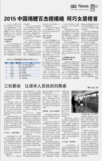 2015中國捐贈百杰榜揭曉 何巧女居榜首