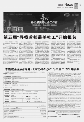 李嘉誠基金會(香港)北京辦事處(2015)年度工作報告摘要