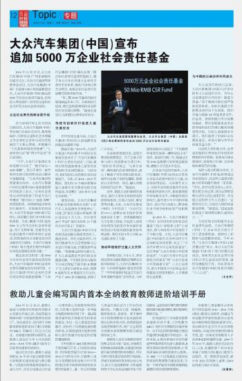 大眾汽車集團(tuán)(中國)宣布追加5000萬企業(yè)社會(huì)責(zé)任基金