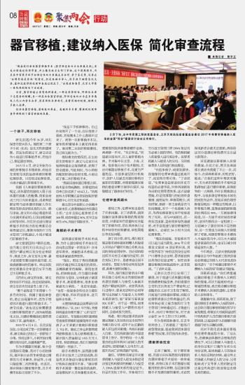 器官移植:建議納入醫(yī)保 簡化審查流程