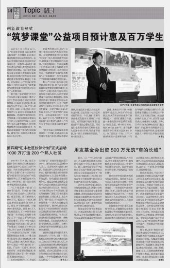 “筑夢課堂”公益項(xiàng)目預(yù)計惠及百萬學(xué)生
