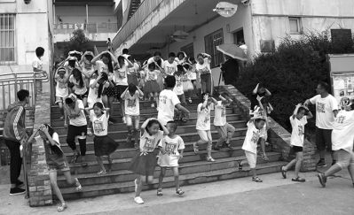 7月25日至8月1日,“140個泥娃娃香泉夏令營”在四川省北川縣香泉小學(xué)開營。香泉小學(xué)以及周邊村鎮(zhèn)的孩子匯集在一起,與志愿者哥哥姐姐度過了為期一周的夏令營生活。“140個泥娃娃香泉夏令營”面向北川地區(qū)的鄉(xiāng)村兒童開展,以音樂和兒童安全為主題,由共青團(tuán)北川縣委、四川原點公益慈善中心、北川社區(qū)志愿者服務(wù)協(xié)會共同主辦。安全教育是本屆夏令營的主題之一。在7天的夏令營中,學(xué)校和志愿者為孩子們開展了多場安全教育和演練活動,這是孩子們在志愿者的帶領(lǐng)下開展地震應(yīng)急逃生演練。 |