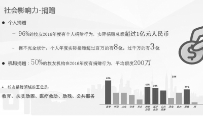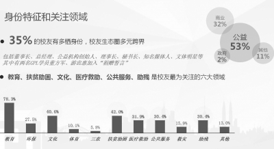 ■ 本報(bào)記者 皮磊 9月24日,由深圳國(guó)際公益學(xué)院(China Global Philanthropy Institute,簡(jiǎn)寫為CGPI)、國(guó)際公益學(xué)院校友會(huì)主辦,中國(guó)獅子聯(lián)會(huì)等機(jī)構(gòu)支持的2017首屆CGPI校友論壇在北京舉行。此次論壇以“共享,共生”為主題,強(qiáng)調(diào)“專業(yè)筑善,聯(lián)合行動(dòng)”,旨在展現(xiàn)由國(guó)際公益學(xué)院培養(yǎng)出來(lái)的慈善領(lǐng)軍者在中國(guó)公益專業(yè)化道路上的思考與行動(dòng),論壇呼吁慈善行業(yè)通過(guò)教育走向?qū)I(yè)化,鼓勵(lì)橫向合作,以聯(lián)合行動(dòng)更加有效地解決社會(huì)問(wèn)題,引領(lǐng)社會(huì)文明,推動(dòng)社會(huì)進(jìn)步。 據(jù)了解,國(guó)際公益學(xué)院校友會(huì)成立于2016年10月18日,目前已經(jīng)成為國(guó)內(nèi)最大的公益領(lǐng)袖社群。在論壇上,國(guó)際公益學(xué)院助理院長(zhǎng)、教務(wù)長(zhǎng)曾晶發(fā)布了《國(guó)際公益學(xué)院校友年度報(bào)告2017》。該報(bào)告針對(duì)國(guó)際公益學(xué)院近300位GPL、EMP、EPL校友進(jìn)行了數(shù)據(jù)調(diào)研與分析(10天以上在校學(xué)習(xí)時(shí)間,含北京師范大學(xué)中國(guó)公益研究院EMP/GPL畢業(yè)生)。 報(bào)告顯示,在這些當(dāng)中,研究生學(xué)歷以上的超過(guò)50%,有海外教育背景的超過(guò)20%,有商學(xué)院EMBA/MBA背景的超過(guò)30%。其中有15年以上工作經(jīng)驗(yàn)的超過(guò)65%,機(jī)構(gòu)管理層和決策層比例超過(guò)90%。 在身份特征方面,有35%的校友擁有多棲身份,校友生態(tài)圈多元跨界,包括包括董事長(zhǎng)、總經(jīng)理、公益機(jī)構(gòu)創(chuàng)始人、理事長(zhǎng)、秘書(shū)長(zhǎng)、知名媒體人、文體明星等,其中有兩名GPL學(xué)員——董方軍和游忠惠加入了“捐贈(zèng)誓言”。 在所關(guān)注領(lǐng)域方面,數(shù)據(jù)顯示校友最為關(guān)注的領(lǐng)域?yàn)榻逃?、扶貧助困、文化、醫(yī)療救助、公共服務(wù)、助殘等,其中有72%的校友都關(guān)注教育。 校友所在機(jī)構(gòu)實(shí)力也是外界比較關(guān)注多的話題。數(shù)據(jù)顯示,校友所在企業(yè)有20%為上市公司,校友所在公益機(jī)構(gòu)凈資產(chǎn)總額超過(guò) 110億元。另外,校友所在機(jī)構(gòu)覆蓋了9個(gè)國(guó)字頭基金會(huì),2016年度公募top10占六席,非公募top10占五席。 該報(bào)告還從捐贈(zèng)、公益項(xiàng)目及支出、行業(yè)創(chuàng)新/行業(yè)支持/國(guó)際化、校友合作以及回饋學(xué)院等五個(gè)方面對(duì)校友的成就和影響力進(jìn)行了分析。 在個(gè)人捐贈(zèng)方面,96%的校友2016年度有個(gè)人捐贈(zèng)行為,實(shí)際捐贈(zèng)總額超過(guò)1億元人民幣;而據(jù)不完全統(tǒng)計(jì),個(gè)人年度實(shí)際捐贈(zèng)超過(guò)百萬(wàn)的有八位,過(guò)千萬(wàn)的有三位。而在機(jī)構(gòu)捐贈(zèng)方面,50%的校友機(jī)構(gòu)在2016年度有捐贈(zèng)行為,平均額度為200萬(wàn)元。分析顯示,校友捐贈(zèng)領(lǐng)域排在前五位的是教育、扶貧助困、醫(yī)療救助、助殘、公共服務(wù)。 在公益項(xiàng)目及支出方面,校友公益項(xiàng)目數(shù)量為855個(gè),覆蓋全國(guó)31個(gè)省、市、區(qū)及特別行政區(qū)以及海外。據(jù)不完全統(tǒng)計(jì),校友所在機(jī)構(gòu)2016年度公益支出超過(guò)47億元,年捐贈(zèng)收入60億元。校友公益項(xiàng)目覆蓋領(lǐng)域前五位是教育、扶貧助困、醫(yī)療救助、環(huán)保、文化。 在行業(yè)創(chuàng)新、行業(yè)支持以及國(guó)際化方面,有35%的校友進(jìn)行過(guò)公益金融與社會(huì)創(chuàng)新領(lǐng)域的實(shí)踐,比如,瑪娜數(shù)據(jù)科技發(fā)展基金會(huì)執(zhí)行委員會(huì)會(huì)長(zhǎng)張維致力于推動(dòng)公益信用體系建設(shè),捐贈(zèng)了中國(guó)第一支股權(quán)捐贈(zèng)信托;王建邦在北京市永源公益基金會(huì)首期捐贈(zèng)620萬(wàn)元,發(fā)起成立DAF(Donor Advised Fund捐贈(zèng)者建議基金)家族傳承的“建邦永續(xù)基金”;64%的校友曾為支持行業(yè)發(fā)展積極貢獻(xiàn)機(jī)構(gòu)和個(gè)人資源(如場(chǎng)地、媒體資源、活動(dòng)代言、志愿服務(wù)等);30%的校友在開(kāi)展公益事業(yè)時(shí)有國(guó)際性舉措和合作,包括對(duì)境外機(jī)構(gòu)捐款、在境外設(shè)立公益機(jī)構(gòu),與境外公益組織合作實(shí)施項(xiàng)目等。 在校友合作方面,超過(guò)42%的校友進(jìn)行過(guò)校友間合作,比如GPL/EMP 錢軍和多位EMP校友推動(dòng)的廁紙項(xiàng)目,EMP李克梅和EMP李國(guó)武推動(dòng)的愛(ài)飛翔項(xiàng)目,EMP葉大偉和ELP/GPL陳劍光推動(dòng)的姚基金希望小學(xué)籃球季全國(guó)集訓(xùn)和聯(lián)賽等。 在回饋學(xué)院方面,有40%的校友曾經(jīng)為學(xué)院提供過(guò)捐贈(zèng)、資源對(duì)接或項(xiàng)目合作;88%的校友曾經(jīng)為學(xué)院的品牌及課程影響力進(jìn)行過(guò)推廣;86%的校友愿意對(duì)班級(jí)活動(dòng)及校友會(huì)事務(wù)付出自己的時(shí)間與精力;86%的校友為課堂提供過(guò)自己的案例,積極參與課堂活動(dòng);85%的校友參與每一次的行動(dòng)計(jì)劃討論與實(shí)施,積極與講師溝通并給予回應(yīng)。 除上述內(nèi)容,
