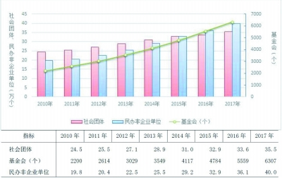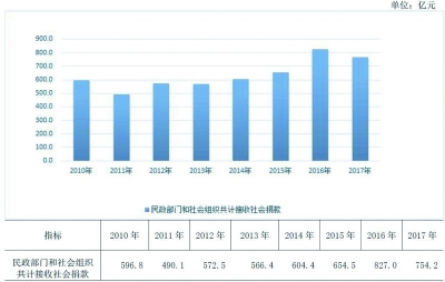 近日,民政部發(fā)布了《2017 年社會服務(wù)發(fā)展統(tǒng)計公報》。統(tǒng)計公報顯示,全年共接收社會捐款754.2億元,其中:民政部門直接接收社會各界捐款25.0億元,各類社會組織接收捐款729.2億元。 社會捐款754.2億元 《統(tǒng)計公報》顯示,截至2017年底,全國共建立經(jīng)常性社會捐助工作站、點和慈善超市2.8萬個(其中:慈善超市8969個)。 全年共接收社會捐款754.2億元,其中:民政部門直接接收社會各界捐款25.0億元,各類社會組織接收捐款729.2億元。 全年各地民政部門直接接收捐贈物資價值折合人民幣1.1億元,間接接收其他部門轉(zhuǎn)入的捐贈物資折款0.7億元,社會捐款10.3億元。全年有582.8萬人次困難群眾受益。 全年有1716.4萬人次在社會服務(wù)領(lǐng)域提供了5395.6萬小時的志愿服務(wù)。 此外,2017年中國福利彩票銷售2169.8億元,比上年增加104.9億元,增長5.1%。全年籌集福利彩票公益金631.1億元,比上年增長6.7%。全年民政系統(tǒng)共支出彩票公益金275.2億元,比上年增長2.6%,其中用于撫恤6.2億元,社會福利173.6億元,社會救助35.4億元,自然災(zāi)害生活救助3.5億元。 社會組織76.2萬個 截至2017年底,全國共有社會組織76.2萬個,比上年增長8.4%;吸納社會各類人員就業(yè)864.7萬人,比上年增長13.2%。全年共查處社會組織違法違規(guī)案件4293起,行政處罰4270起。 全國共有社會團體35.5萬個,比上年增長5.6%,其中:工商服務(wù)業(yè)類3.9萬個,科技研究類1.5萬個,教育類1.0萬個,衛(wèi)生類0.9萬個,社會服務(wù)類4.8萬個,文化類3.9萬個,體育類3.0萬個,生態(tài)環(huán)境類0.6萬個,法律類0.3萬個,宗教類0.5萬個,農(nóng)業(yè)及農(nóng)村發(fā)展類6.2萬個,職業(yè)及從業(yè)組織類2.0萬個,其他6.8萬個。全年共查處社會團體違法違規(guī)案件2375起,行政處罰2352起。 全國共有各類基金會6307個,比上年增長13.5%,其中:公募基金會1678個,非公募基金會4629個;民政部登記的基金會213個。全年共查處基金會違法違規(guī)案件49起,行政處罰49起。 全國共有民辦非企業(yè)單位40.0萬個,比上年增長11.0%,其中:科技服務(wù)類1.6萬個,生態(tài)環(huán)境類501個,教育類21.7萬個,衛(wèi)生類2.7萬個,社會服務(wù)類6.2萬個,文化類2.1萬個,體育類1.8萬個,法律類1197個,工商業(yè)服務(wù)類3652個,宗教類115個,國際及其他涉外組織類15個,其他3.0萬個。全年共查處民辦非企業(yè)單位違法違規(guī)案件1869起,行政處罰1869起。 持證社工32.7萬人 《統(tǒng)計公報》顯示,截至2017年底全國持證社會工作者共計32.7萬人,其中社會工作師8.3萬人,助理社會工作師24.3萬人。 截至2017年底,全國注冊登記的提供住宿的各類社會服務(wù)機構(gòu)3.2萬個,其中注冊登記為事業(yè)單位的機構(gòu)1.8萬個,注冊登記為民辦非企業(yè)單位的機構(gòu)1.3萬個。 其中,各類養(yǎng)老服務(wù)機構(gòu)和設(shè)施15.5萬個,比上年增長10.6%,其中:注冊登記的養(yǎng)老服務(wù)機構(gòu)2.9萬個,社區(qū)養(yǎng)老機構(gòu)和設(shè)施4.3萬個,社區(qū)互助型養(yǎng)老設(shè)施8.3萬個;各類養(yǎng)老床位合計744.8萬張,比上年增長2%(每千名老年人擁有養(yǎng)老床位30.9張),其中社區(qū)留宿和日間照料床位338.5萬張。 兒童收養(yǎng)救助服務(wù)機構(gòu)663個,床位10.3萬張,年末收留撫養(yǎng)各類人員5.9萬人。其中兒童福利機構(gòu)469個,床位9.5萬張;未成年人救助保護中心194個,床位0.8萬張,全年共救助流浪乞討未成年人3.5萬人次。 各類救助管理機構(gòu)1623個,床位10.1萬張,全年救助生活無著流浪乞討人員215.4萬人次(在站救助163.1萬人次,站外救助52.3萬人次)。 2.4090億老年人 《統(tǒng)計公報》顯示,截至2017年底,全國60周歲及以上老年人口24090萬人,占總?cè)丝诘?7.3%,其中65周歲及以上老年人口15831萬人,占總?cè)丝诘?1.4%。全國共有老齡事業(yè)單位1600個,老年法律援助中心2.0萬個,老年維權(quán)協(xié)調(diào)組織6.4萬個,老年學(xué)校4.9萬個、在校學(xué)習(xí)人員704.0萬人,各類老年活動室35.0萬個;享受高齡補貼的老年人2682.2萬人,比上年增長13.9%;享受護理補貼的老年人61.3萬人,比上年增長51.5%;享受養(yǎng)老服務(wù)補貼的老年人354.4萬人,比上年增長25.3%。 截至2017年底,全國共有孤兒41.0萬人,其中集中供養(yǎng)孤兒8.6萬人,社會散居孤兒32.4萬人。2017年全國辦理收養(yǎng)登記1.9萬件,其中:內(nèi)地居民收養(yǎng)登記1.7萬件,港澳臺華僑收養(yǎng)登記103件,外國人收養(yǎng)登記2228件。 2017年,困難殘疾人生活補貼人數(shù)1019.2萬人,重度殘疾人護理補貼人數(shù)1053.7萬人。截至2017年底,民政部門直屬康復(fù)輔具機構(gòu)24個,固定資產(chǎn)原價5.7億元。 1.4億人次不同程度受災(zāi) 2017年全國各類自然災(zāi)害共造成1.4億人次不同程度受災(zāi),因災(zāi)死亡失蹤979人,緊急轉(zhuǎn)移安置525.3萬人次;農(nóng)作物受災(zāi)面積18478.1千公頃,其中絕收面積1826.7千公頃;倒塌房屋15.3萬間,損壞房屋157.9萬間;因災(zāi)直接經(jīng)濟損失3018.7億元。 國家減災(zāi)委、民政部共啟動國家救災(zāi)應(yīng)急響應(yīng)17次,向各受災(zāi)省份累計下?lián)苤醒胴斦匀粸?zāi)害生活補助資金80.7億元(含中央冬春救災(zāi)資金57.3億元),緊急調(diào)撥近3萬頂救災(zāi)帳篷、11.6萬床(件)衣被、3.1萬條睡袋、6.9萬張折疊床等中央儲備生活類救災(zāi)物資。 ■ 本報