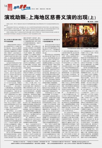 演戲助賑:上海地區(qū)慈善義演的出現(xiàn)(上)
