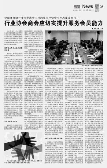 全國及京津行業(yè)協(xié)會(huì)商會(huì)支持和服務(wù)民營企業(yè)發(fā)展座談會(huì)召開 行業(yè)協(xié)會(huì)商會(huì)應(yīng)切實(shí)提升服務(wù)會(huì)員能力