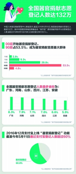 今天我們再次查詢這一數(shù)字時,它已來到1320406(截至5月26日),其中“90后”登記者超過一半。年輕人和互聯(lián)網(wǎng)平臺的加入正助推器官捐獻(xiàn)被更多人接受。