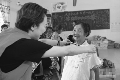 8月14日,在寧國市南極鄉(xiāng)中心小學臨時安置點,志愿者給家住南極鄉(xiāng)龍川村的受災群眾朱何玉(右)發(fā)放衣物。受臺風“利奇馬”影響,安徽省寧國市部分鄉(xiāng)鎮(zhèn)受災嚴重,一些村莊被洪水淹沒。災情發(fā)生后,當?shù)赝ㄟ^設立臨時安置點保障受災群眾的基本生活。
