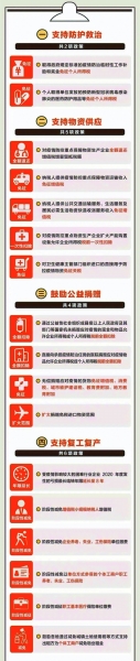 新的《指引》增加了新政,細(xì)化了內(nèi)容,補(bǔ)充了清單,共涉及支持防護(hù)救治、支持物資供應(yīng)、鼓勵(lì)公益捐贈(zèng)、支持復(fù)工復(fù)產(chǎn)四個(gè)方面17條措施。