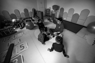 11月18日,在太原市靈星社區(qū)服務(wù)中心,李林峰和自閉癥患兒做游戲。山西省太原市靈星社區(qū)服務(wù)中心是一所為自閉癥兒童提供康復訓練的機構(gòu)。2015年,“90后”太原小伙李林峰大學畢業(yè)后來到這里,成為了一名老師。談到工作的感受,李林峰說自己收獲良多?!懊總€孩子都有自己的特點,在試著走進他們內(nèi)心世界的過程中,感覺自己也變回了孩子”,他說,“希望通過我的努力,幫助這些‘星星的孩子’找到前行的方向?!?/p>