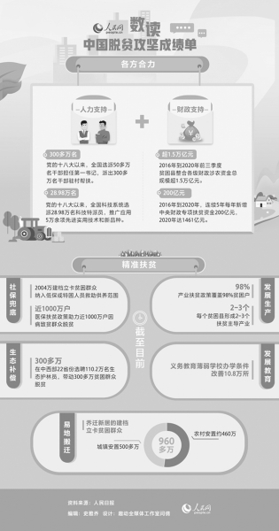 ‘歷經(jīng)8年,現(xiàn)行標(biāo)準(zhǔn)下近1億農(nóng)村貧困人口全部脫貧,832個(gè)貧困縣全部摘帽?!?/p> 新年前夕,國家主席習(xí)近平在新年賀詞中全面回顧了‘極不平凡’的2020年。扶貧話題已經(jīng)連續(xù)第七次出現(xiàn)在他的新年賀詞中,而這次,意義尤為不同。 其作始也簡,其將畢也必巨。 回顧決戰(zhàn)脫貧攻堅(jiān)的偉大征程,每一個(gè)腳步都踏出奮斗和拼搏,每一幀風(fēng)景都寫滿美好和希望。 較真碰硬 一鼓作氣啃下“硬骨頭” 冬日暖陽下,貴州省望謨縣樂旺鎮(zhèn)坡頭村村民唐守芬臉上洋溢著幸福的笑容。 “家門口有錢掙,天天都是好日子嘍!”唐守芬高興地告訴人民日報(bào)記者,去年她和老伴靠著在花椒種植基地干活,全家脫了貧,越來越有干勁。 與唐守芬家一起脫貧的,還有坡頭村的28戶村民。山多地少,坡頭村一度是深貧村。為了攻下深貧堡壘,去年縣里實(shí)施掛牌督戰(zhàn),村里成立了農(nóng)民專業(yè)合作社,選定花椒為長線“大”產(chǎn)業(yè),并搭配短平快“小”產(chǎn)業(yè),還引進(jìn)了龍頭企業(yè)提供花椒技術(shù)服務(wù)。一年奮戰(zhàn)下來,脫貧戶人均純收入超過1.1萬元,穩(wěn)住了全村增收脫貧的“基本盤”。 2020年11月23日,貴州省宣布包括望謨縣在內(nèi)的剩余9個(gè)貧困縣退出貧困縣序列,至此我國832個(gè)貧困縣全部宣布脫貧。 這是一份沉甸甸的、兌現(xiàn)承諾的發(fā)展答卷。決勝之年,開局就是決戰(zhàn),起步就是沖刺。2020年3月6日,在決戰(zhàn)決勝脫貧攻堅(jiān)座談會(huì)上,習(xí)近平總書記發(fā)出了總攻令—— “要繼續(xù)聚焦‘三區(qū)三州’等深度貧困地區(qū),落實(shí)脫貧攻堅(jiān)方案,瞄準(zhǔn)突出問題和薄弱環(huán)節(jié)狠抓政策落實(shí),攻堅(jiān)克難完成任務(wù)。” “對52個(gè)未摘帽貧困縣和1113個(gè)貧困村實(shí)施掛牌督戰(zhàn),國務(wù)院扶貧開發(fā)領(lǐng)導(dǎo)小組要較真碰硬‘督’,各省區(qū)市要凝心聚力‘戰(zhàn)’,啃下最后的硬骨頭?!?/p> ——加大資金支持和工作指導(dǎo)力度。疫情下,資金支持不降反增,2020年中央財(cái)政專項(xiàng)扶貧資金達(dá)到1461億元。此外,還一次性安排脫貧攻堅(jiān)補(bǔ)短板資金300億元,重點(diǎn)支持補(bǔ)齊因疫情導(dǎo)致的財(cái)政減收,完成剩余貧困人口脫貧任務(wù),做好貧困勞動(dòng)力就業(yè)和產(chǎn)銷對接工作等。 ——強(qiáng)化督戰(zhàn)一體,幫助基層解決實(shí)際困難和問題。截至2020年7月底,52個(gè)掛牌縣15.6萬貧困人口的飲水安全、住房安全、義務(wù)教育和醫(yī)療衛(wèi)生保障方面的問題得到解決;截至2020年10月底,90%以上建檔立卡貧困人口得到了產(chǎn)業(yè)扶貧和就業(yè)扶貧支持,全國外出務(wù)工貧困勞動(dòng)力2973萬人,已超2019年全年。截至2020年12月,剩余的40萬貧困搬遷群眾各地已完成相關(guān)退出工作,“十三五”時(shí)期易地扶貧搬遷任務(wù)全面完成。 ——發(fā)動(dòng)社會(huì)力量,助力掛牌村脫貧攻堅(jiān)。東中部11?。ㄊ校┕步M織動(dòng)員1937家社會(huì)力量與掛牌督戰(zhàn)村建立結(jié)對關(guān)系,實(shí)現(xiàn)對1113個(gè)掛牌督戰(zhàn)村結(jié)對幫扶全覆蓋。 …… “中國的減貧密碼,用一句話概括就是:加強(qiáng)領(lǐng)導(dǎo)是根本、把握精準(zhǔn)是要義、增加投入是保障、各方參與是合力、群眾動(dòng)力是基礎(chǔ)。這些都是我們在波瀾壯闊的脫貧攻堅(jiān)實(shí)踐中形成的有益經(jīng)驗(yàn)?!眹鴦?wù)院扶貧辦主任劉永富說。 盡銳出戰(zhàn) 凝心聚力答好“民生卷” 全面打贏脫貧攻堅(jiān)戰(zhàn)的收官之年,本來就有不少硬骨頭要啃,又遇新冠肺炎疫情,這場硬仗怎么打? “疫情或?yàn)?zāi)害對減貧進(jìn)程會(huì)產(chǎn)生影響。我們必須采取有效措施,將疫情的影響降到最低?!?/p> 落實(shí)分區(qū)分級精準(zhǔn)防控策略、優(yōu)先支持貧困勞動(dòng)力務(wù)工就業(yè)、解決扶貧農(nóng)畜牧產(chǎn)品滯銷問題、支持扶貧產(chǎn)業(yè)恢復(fù)生產(chǎn)、加快扶貧項(xiàng)目開工復(fù)工……在決戰(zhàn)決勝脫貧攻堅(jiān)座談會(huì)上,習(xí)近平總書記就如何統(tǒng)籌推進(jìn)疫情防控和脫貧攻堅(jiān)開出“藥方”。 一個(gè)多月后,習(xí)近平總書記的身影出現(xiàn)在秦嶺深處的陜西省柞水縣小嶺鎮(zhèn)金米村。在村里的木耳展銷中心直播臺(tái)前,習(xí)近平總書記對著手機(jī)鏡頭點(diǎn)贊——“小木耳、大產(chǎn)業(yè)”。據(jù)媒體報(bào)道,當(dāng)晚,2000萬網(wǎng)友涌進(jìn)直播間,20多噸木耳秒光。 產(chǎn)業(yè)扶貧是啃下脫貧攻堅(jiān)硬骨頭的重要舉措,消費(fèi)扶貧行動(dòng)則是帶動(dòng)產(chǎn)業(yè)可持續(xù)發(fā)展的有效方式?;仡欉^去一年,我國中西部22個(gè)省份組織認(rèn)定扶貧產(chǎn)品16萬多個(gè),全年扶貧產(chǎn)品銷售額達(dá)到3069.4億元。 夏季的洪澇災(zāi)害又帶來一輪“加試”,絕不能讓洪澇災(zāi)害造成返貧致貧。保民生所需,是當(dāng)務(wù)之急。 2020年8月18日,正在安徽省考察調(diào)研的習(xí)近平總書記來到阜南縣的紅亮箱包扶貧車間察看生產(chǎn)線,同職工面對面交流,了解阜南縣開展就業(yè)扶貧和防止因?yàn)?zāi)致貧返貧情況。 紅亮箱包有限公司是當(dāng)?shù)胤