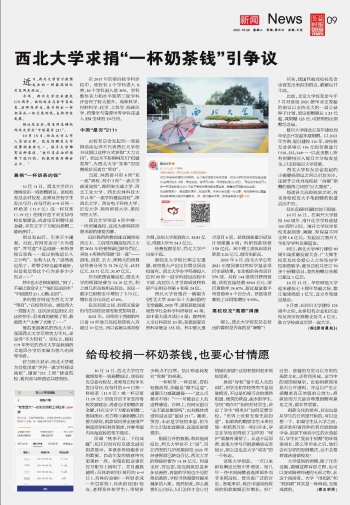 西北大學(xué)求捐“一杯奶茶錢”引爭(zhēng)議
