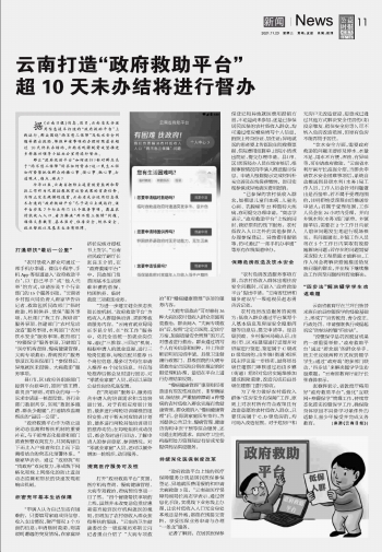 云南打造“政府救助平臺” 超10天未辦結(jié)將進(jìn)行督辦