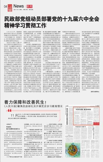 民政部黨組動(dòng)員部署黨的十九屆六中全會(huì)精神學(xué)習(xí)貫徹工作