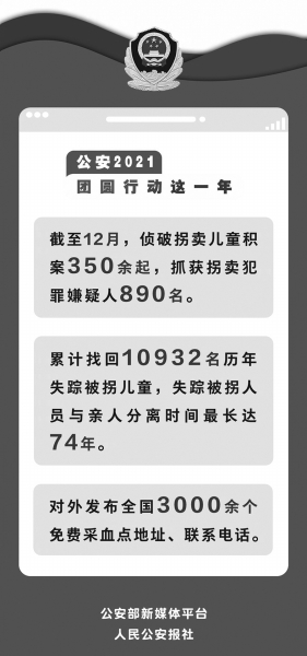 在四川省綿陽(yáng)市公安局狹長(zhǎng)的走廊通道里,王玉菊(化名)夫婦來(lái)回踱著步,焦急地等待著DNA比對(duì)結(jié)果。 32年里,王玉菊夫婦沒有停止過(guò)對(duì)雙胞胎女兒的尋找。得知公安機(jī)關(guān)正在全國(guó)范圍內(nèi)開展‘團(tuán)圓’行動(dòng),他們馬上到當(dāng)?shù)毓矙C(jī)關(guān)尋求幫助。 ‘每一個(gè)失散親人的家庭,都有一段不堪回首的尋親之苦和骨肉分離的思念之痛,都渴望早日找回親人、全家團(tuán)圓。為離散家庭消除痛苦、實(shí)現(xiàn)團(tuán)圓是我們公安機(jī)關(guān)的重大責(zé)任。’公安部刑事偵查局相關(guān)負(fù)責(zé)人說(shuō)。 2021年,全國(guó)公安機(jī)關(guān)開展為期一年的‘團(tuán)圓’行動(dòng),全力偵破拐賣兒童積案、全力緝捕拐賣兒童犯罪嫌疑人、全面查找失蹤被拐兒童。截至2021年12月,已找回歷年失蹤被拐兒童10932名。 “看到失散多年的家庭團(tuán)聚,再苦再累都值得” “沒錯(cuò)!就是她們!”經(jīng)過(guò)反復(fù)的遺傳信息核查和人像比對(duì),最終確認(rèn)福建汪銀銀(化名)和安徽趙珊(化名)的生物信息與王玉菊夫婦吻合,屬于親子關(guān)系。民警胡祥雨興奮地把檢驗(yàn)結(jié)果第一時(shí)間告訴了王玉菊夫婦。 胡祥雨,來(lái)自綿陽(yáng)市公安局刑偵支隊(duì),主要負(fù)責(zé)打拐工作?!皥F(tuán)圓”行動(dòng)開展以來(lái),為了讓群眾尋親更加方便,綿陽(yáng)公安機(jī)關(guān)在重點(diǎn)地區(qū)成立了3個(gè)以打拐民警名字命名的反拐尋親工作室,“胡祥雨工作室”就是其中之一。以工作室為依托,截至2021年12月13日,胡祥雨和當(dāng)?shù)卮蚬彰窬还矌椭?16個(gè)家庭實(shí)現(xiàn)了團(tuán)圓。 汪銀銀和趙珊的信息雖然比對(duì)成功了,但還有一件事像一塊石頭一樣壓在胡祥雨心里。“找到孩子只是復(fù)雜工作的第一步?!焙橛暾f(shuō)。 原來(lái),由于事發(fā)突然,汪銀銀和趙珊沒有思想準(zhǔn)備,對(duì)認(rèn)親抱有一些抵觸情緒。 胡祥雨反復(fù)通過(guò)短信、電話、微信聯(lián)系,并專程跑到福建、安徽,與汪銀銀和趙珊不斷溝通,解釋情況,終于獲得了她們的理解和信任。2021年10月30日,在綿陽(yáng)公安的見證下,失散32年的王玉菊一家重獲團(tuán)圓。 “感謝你們的辛苦付出,你們真是人民英雄!”王玉菊抱著兩個(gè)女兒,激動(dòng)地對(duì)胡祥雨等民警表示感謝。 安徽省公安廳刑警總隊(duì)“打拐辦”負(fù)責(zé)人楊菁表示,“雖然大家長(zhǎng)期超負(fù)荷工作,但每當(dāng)看到失散多年的家庭團(tuán)聚,再苦再累都值得!” “每位民警都承擔(dān)數(shù)項(xiàng)任務(wù),嚴(yán)格意義上的專職打拐民警沒有幾個(gè)人。大家的任務(wù)特別重,可就是在這種情況下,我們的民警依然奮戰(zhàn)在打拐工作第一線,為的就是努力讓更多家庭實(shí)現(xiàn)團(tuán)圓。”楊菁介紹,很多民警發(fā)現(xiàn)了線索就住在當(dāng)?shù)?,一遍遍地采集信息、血樣,反?fù)走訪摸排,如同是在找尋自己的親人。 “公安機(jī)關(guān)更加有能力、有條件承擔(dān)起這份重任” “團(tuán)圓”行動(dòng)中,找到的失蹤被拐人員與親人分離時(shí)間最長(zhǎng)達(dá)74年。 “受限于技術(shù)條件等原因,以前很多失蹤被拐兒童案件沒有得到及時(shí)偵破。隨著DNA技術(shù)和人像比對(duì)技術(shù)不斷發(fā)展、公安辦案能力持續(xù)提升、打拐工作機(jī)制不斷完善,尤其是公安部部署開展命案積案攻堅(jiān)行動(dòng)以來(lái),各地公安機(jī)關(guān)在組織指揮、技術(shù)支撐、區(qū)域協(xié)作等方面積累了豐富經(jīng)驗(yàn)?!惫膊啃虃删指本珠L(zhǎng)童碧山介紹。 人民群眾期盼的,人民警察一直沒有放棄?!艾F(xiàn)在,公安機(jī)關(guān)更加有能力、有條件主動(dòng)承擔(dān)起這份重任?!蓖躺秸f(shuō)。 “我覺得差不多了,肯定是這個(gè)!”參加“團(tuán)圓”行動(dòng)刑事技術(shù)集中比對(duì)會(huì)戰(zhàn)的民警李海燕很自信。 2021年5月的一天,天津市公安局刑偵總隊(duì)刑事技術(shù)專家呂游正拿著一張被拐男孩祁吉5歲時(shí)的照片在電腦屏幕前仔細(xì)做著對(duì)比,突然發(fā)現(xiàn)一名廣東省汕頭市的男子和祁吉的五官特征高度相似,馬上請(qǐng)李海燕幫忙聯(lián)系地方公安機(jī)關(guān)核查。 “通過(guò)對(duì)祁吉小時(shí)候的照片進(jìn)行技術(shù)增強(qiáng)和清晰化處理,我們得到了200多個(gè)高度相似的照片,經(jīng)過(guò)兩天不斷甄別篩選,最終找到一個(gè)生物特征最符合的男孩,反復(fù)比對(duì)分析后,最終確認(rèn)這個(gè)男孩就是祁澤華、龍大娥夫婦失散25年的兒子?!眳斡握f(shuō)。 “人像比對(duì)技術(shù)之前不成熟,準(zhǔn)確率低,沒有大范圍應(yīng)用在打拐領(lǐng)域,這幾年通過(guò)不斷迭代發(fā)展,人像比對(duì)技術(shù)準(zhǔn)確率有了大幅提升?!?021年9月,呂游再次參加公安部組織的第二次技術(shù)比對(duì)會(huì)戰(zhàn),每天依舊工作近10個(gè)小時(shí),查看上千張照片,但他覺得很有成就感,“我們甚至還比中過(guò)一張被拐兒童的百日照”。 同樣參加過(guò)技術(shù)比對(duì)會(huì)戰(zhàn)的公安部物證中心情報(bào)處處長(zhǎng)劉冰介紹,將DNA技術(shù)與人像比對(duì)技術(shù)成功融合,是這次“團(tuán)